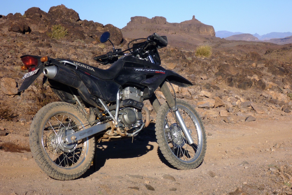 When I first started renting Honda XR250 Tornados in 2012, the bikes were already ropey but I thought: oh well, it’s Morocco, what do you expect? Tyres and chains were worn; brakes were lame, chassis bearings were shot. But they started and ran and, some clocking up to 100,000 rental kms over the next few years. They were replaced with 310GSs which were clearly not trail bikes, but were well adapted with crash bars, tail racks and bash plates, while having the benefit of being tubeless, EFI and with lower seats.
