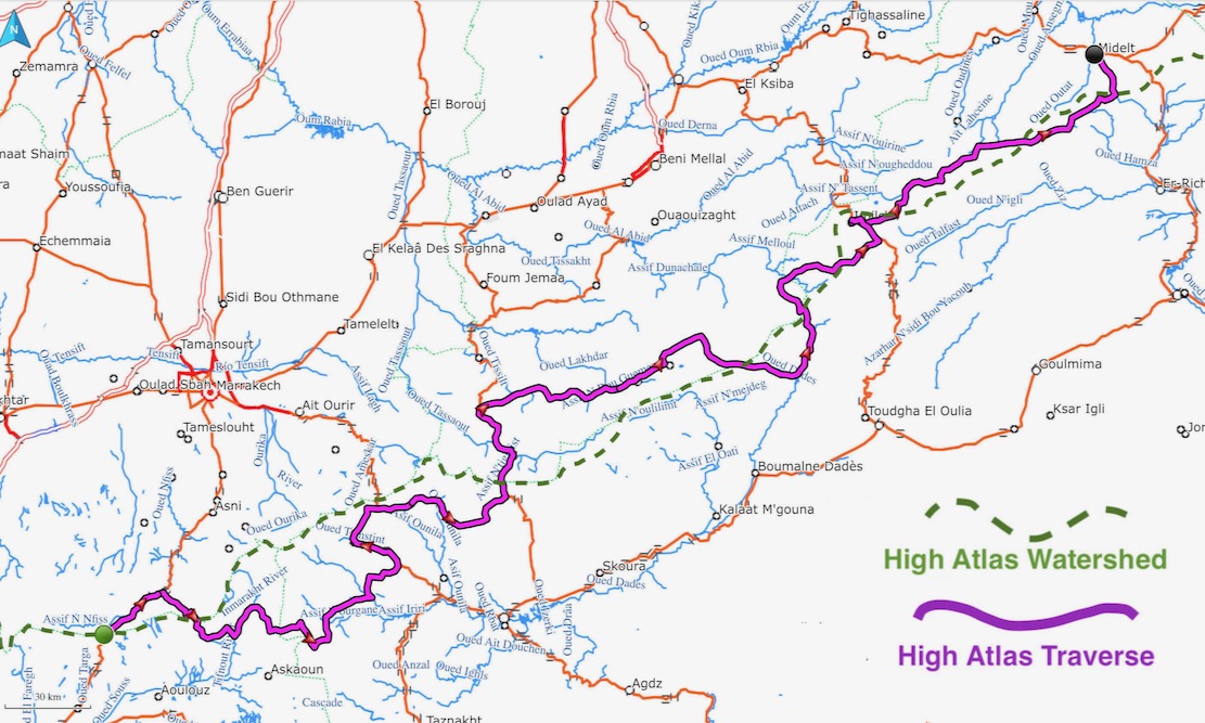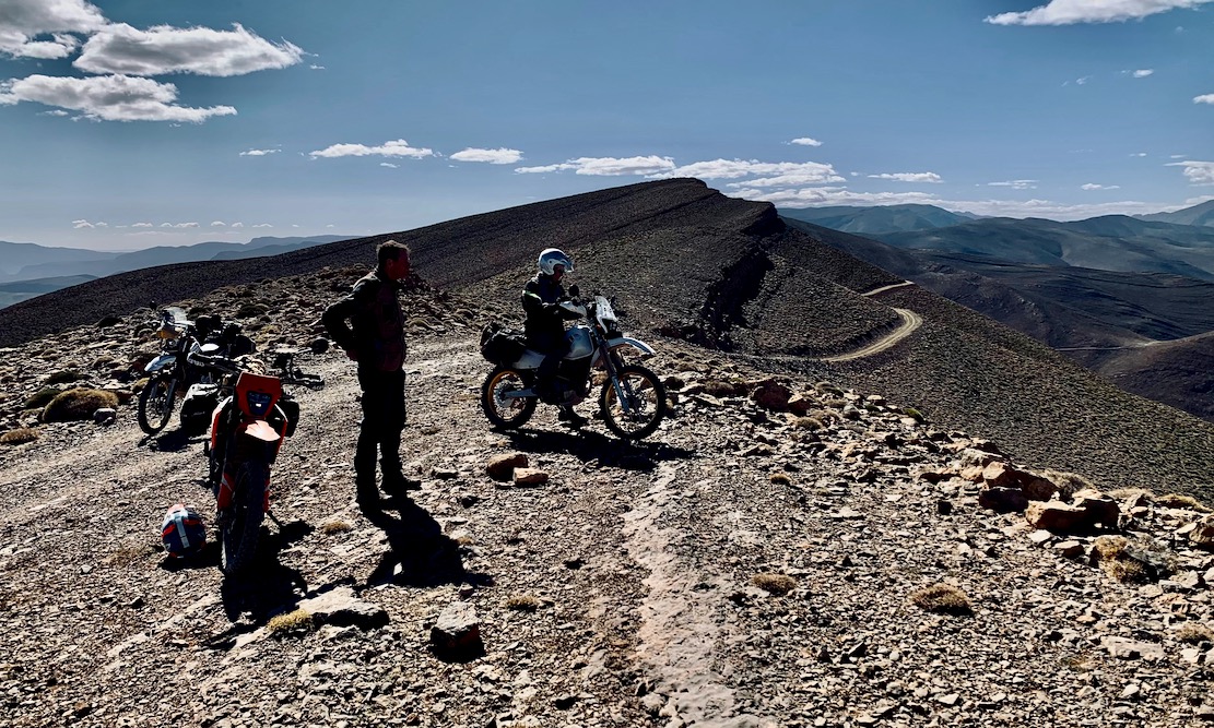 Me, Bob and Simon left Ijoukak, 100km south of Marrakech to recce the High Atlas Traverse. The H.A.T is like the TMT, but follows the mountain watershed via highest motorable passes and is now online for all to download for free. Only about 15% overlaps the TMT.