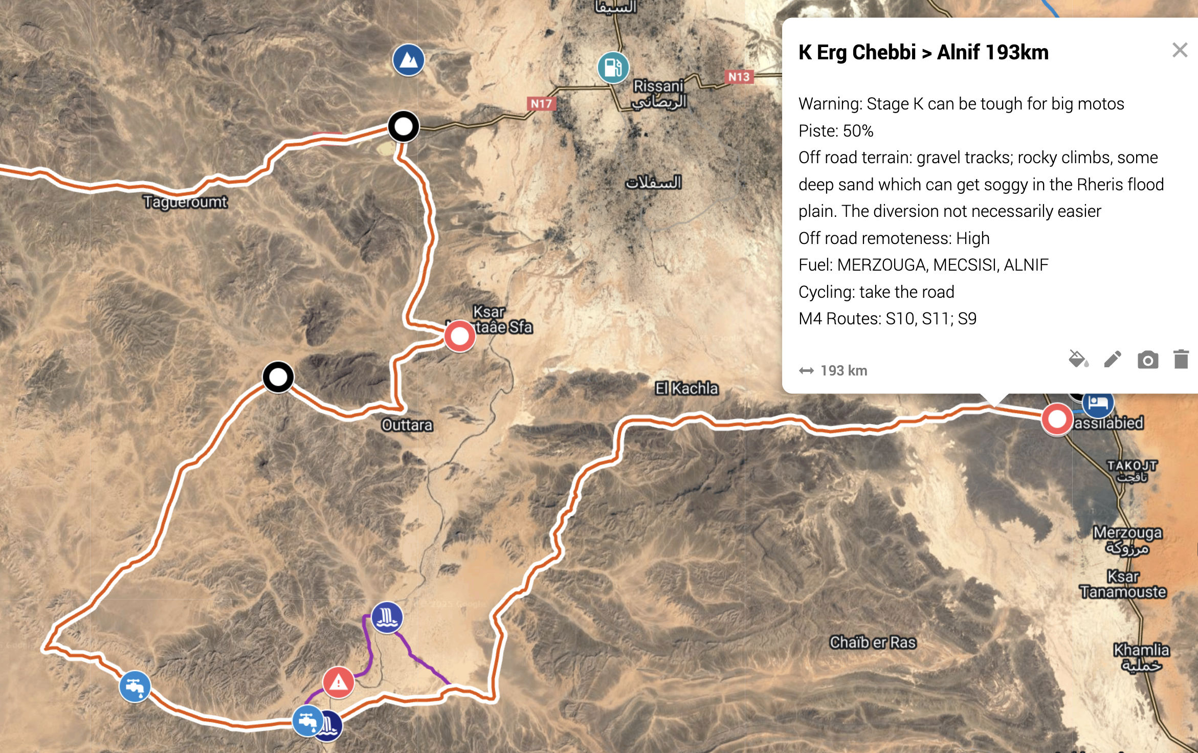 The video above, shot in November 2025 by Ian Lund gives a good impression of Stage K from Merzouga across the ‘Black Rock Desert’ and over to Alnif, with a detour up to Gara Medouar outcrop, just off the road.